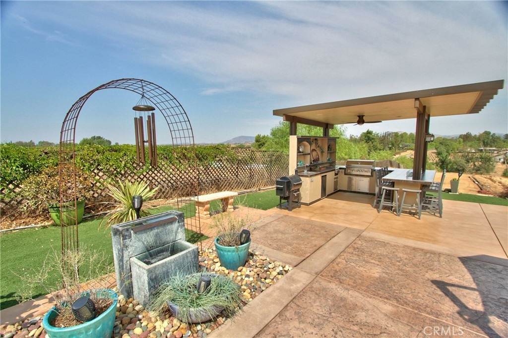 Spectacular gated estate with 5.79 usable acres, panoramic views and a separate, exceptionally charming, 506 sq ft, 2021 Tiny House, perched atop the upper section of the property, which can be used as a guest house or rental income. This property has been completely remodeled and painted inside and partially outside, the gorgeous kitchen is complete with custom farm house soft close cabinets, under cabinet lighting, custom concrete farm house sink, new stainless steel appliances, quartz counters, wine cooler, large walk-in pantry, stone fireplace, beautiful LVP flooring, recessed lighting, all new windows and a new electrical panel. The living room boasts a bar and wine tasting area. The master suite has 12 ft custom sliding glass closet doors, a barn door leading to the completely upgraded master bathroom with stand alone soaking tub, a large glass enclosed shower and petrified wood sink. Two additional bedrooms upstairs with an updated second bathroom and access to a 12 x 25 ft deck that presents breathtaking views. This home is perfect for entertaining with the tri-level stamped concrete patios, outdoor kitchen with a Lion BBQ, two burner cook-top, a refrigerator, 2 glass fire pits, water feature, pond, waterfall and custom patio furniture. A finished and converted two-car garage (not permitted but added to square footage) can be used as a bonus room or theater and for that quiet time, a private tranquil side yard with above ground spa, water feature and lounge area. This property has multiple graded areas and is ready for that person who wants to build a very large custom view home with horse facilities or plant a large vineyard (this land has been deemed suitable for growing wine grapes). There are a number of mature and producing fruit trees and raised bed gardens on the rear (upper 2.0 acres) around the tiny house, all complimenting a potential green thumb's dream come true. As an added bonus, also included is the custom patio furniture, 2 glass fire pits, the storage sheds, a 20 foot refurbished and painted metal shipping container, a remodeled vintage 27 foot Fleetwood trailer which could be a caretaker's residence or additional income and a Kubota B2301 tractor.