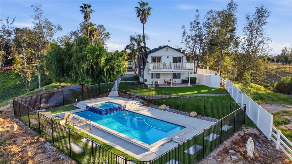 Welcome to 35835 Meadow Ridge, a truly unique property situated on 2.73 acres in the heart of Temecula Wine Country. This privately gated and fully fenced estate offers privacy and space. It is located directly behind South Coast Winery and just minutes from wineries, restaurants, golf courses, Old Town Temecula, and Pechanga Casino. The recently renovated home features 3 bedrooms and 2 bathrooms upstairs. All bedrooms enjoy scenic views, and a large, expansive deck creates the perfect space to relax or entertain. The property also includes an impressive 3,200 sq ft steel building measuring 40x80 feet, with 23-foot ceilings, a 23x23 loft ideal for storage, and a half bathroom. The building is fully insulated and equipped with a 5-ton air conditioning system and an electric heating element. It has a 400-amp electrical panel powered by over 15 kilowatts of solar panels owned in full. Within the building is a 1,000 sq ft ADU featuring a kitchen, open living space, 1 bedroom, and 1 bathroom with dual vanity, shower, and soaking tub. The ADU has its own separate 2-ton high-efficiency air conditioner. The outdoor space is equally impressive, with a brand-new pool built in 2022, fully fenced, and equipped with both electric and propane heating. The usable acreage offers ample space for a vineyard or other uses. The paved road provides easy access to town. Additional highlights include no HOA, low taxes, and location within the highly desirable Temecula School District. Don't miss this rare opportunity to own a versatile wine-country property that combines privacy, functionality, and a lifestyle.