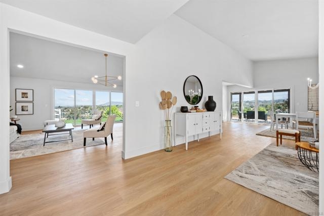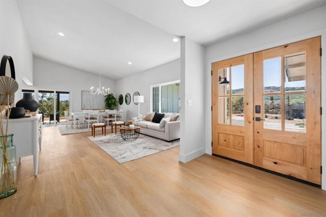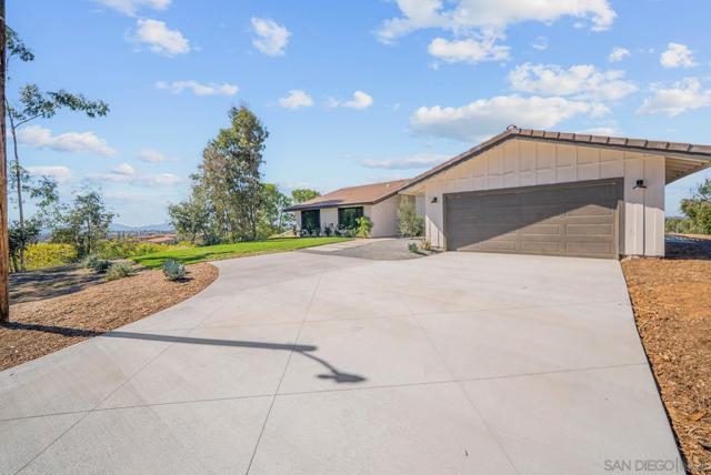 Stunning 4 bed 2.5 bath remodel on expansive 3.9 acre lot perched on a hilltop with panoramic views of wine country! Brand new driveway! Meticulous attention to detail with this Temecula home featuring a bright & open single story floorplan, vaulted ceilings, large family room, abundance of windows, modern fixtures & finishes, chef's kitchen with contrasting white and gray cabinetry, spacious bedrooms and covered patio area off living space. Palatial master retreat featuring spa-like bath with large walk-in, tiled shower. Home features a newly paved driveway, 2 car attached garage and enormous detached garage/workshop. The 3.9 acre lot provides space for potential ADU, pool, vehicles, horse stables, hobbies & toys while offering privacy and quiet. Perfect location for your own peaceful sanctuary!
