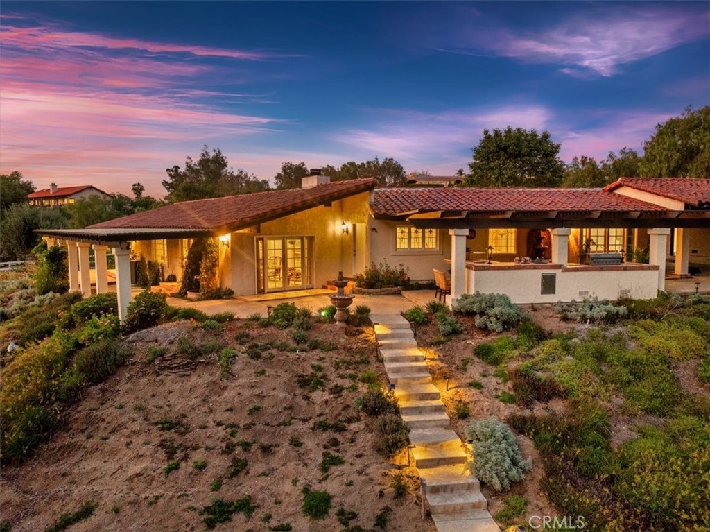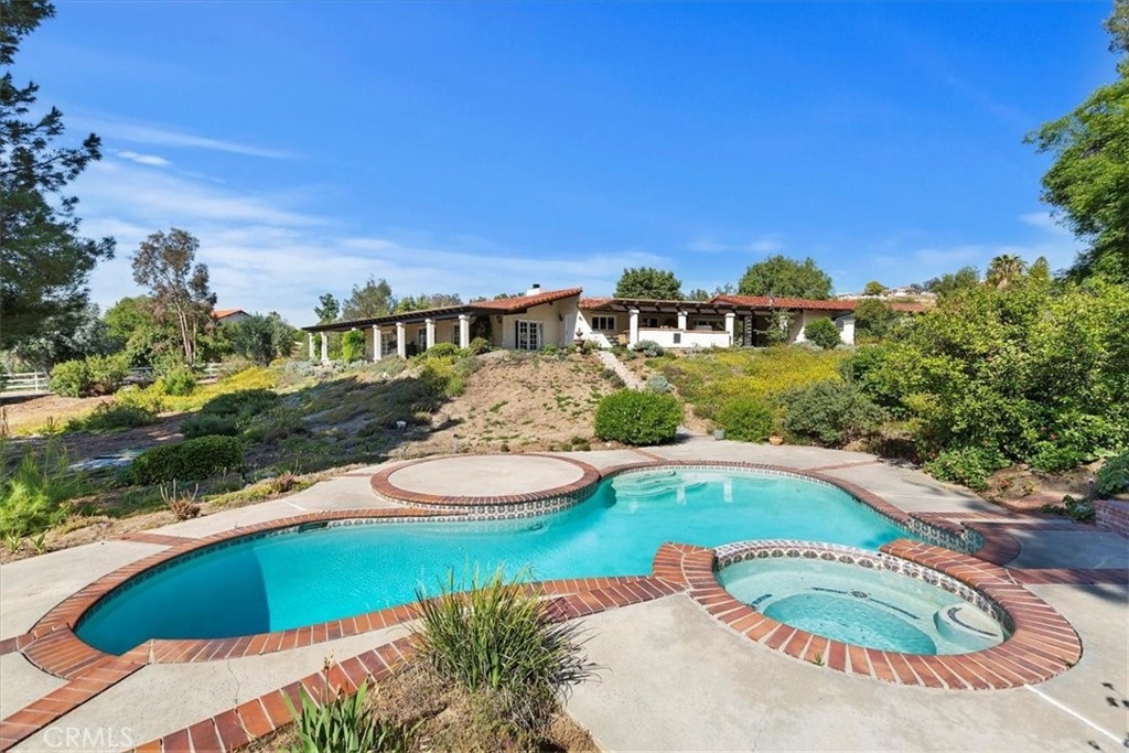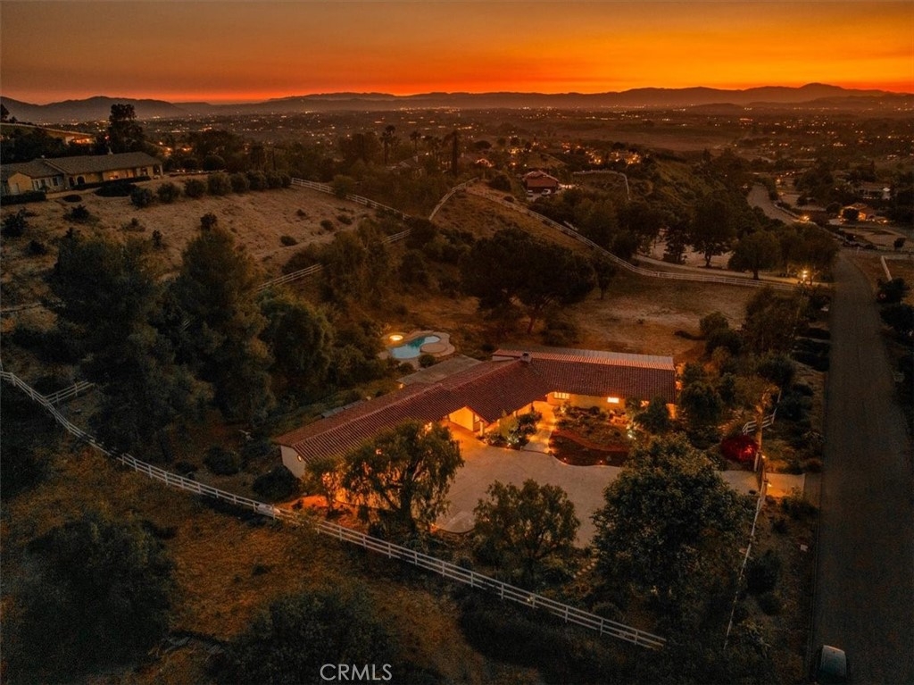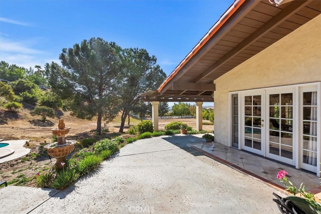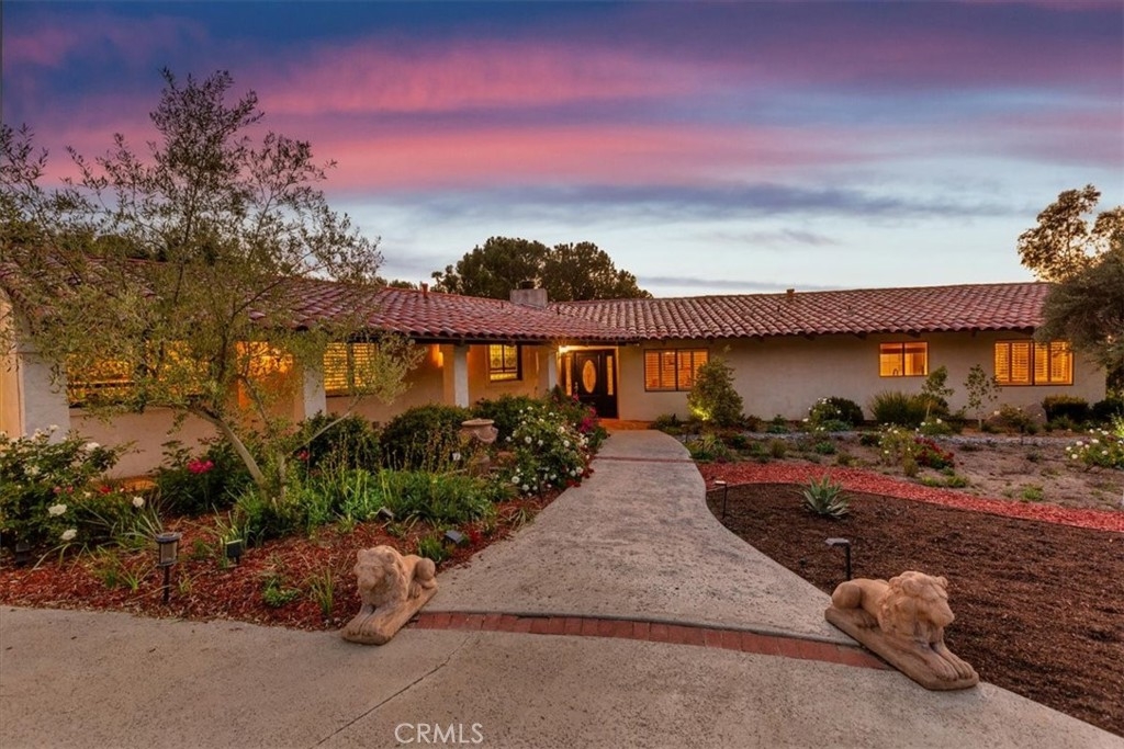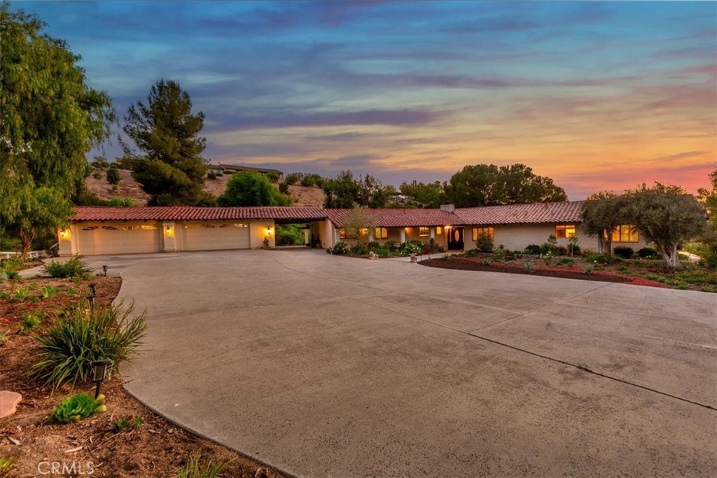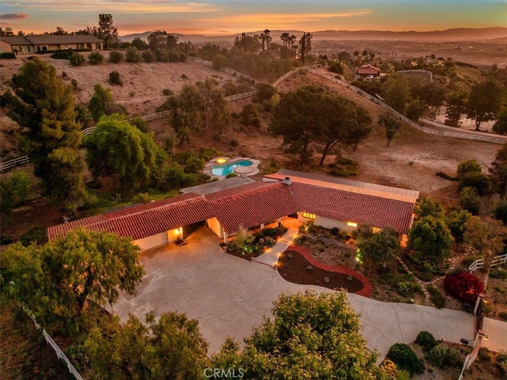 Stunning single story estate with views of vineyards and rolling hills with amazing sunsets and morning hot air balloons in the prestigious community of Glenoak Hills. Offers the perfect blend of timeless charm, luxury, and endless potential with its all usable land. Set on a fully fenced and gated 2.4 acre lot of entirely usable land, this property is a rare find. Step inside to an open, light-filled floor plan with 2,500 sq ft of living space, featuring four bedrooms and 2.5 baths. Enjoy a welcoming family room with a cozy fireplace, travertine flooring, and two French doors that open to beautiful grounds with access to the pool. The expansive living room impresses with a four-panel French door, oversized windows, and a statement chandelier. The gourmet kitchen has been beautifully remodeled with white cabinets, quartz countertops, crown molding, a coffered ceiling, and recessed lighting. The luxurious primary suite with a four-panel French door offers private patio access, a spa-inspired bathroom with granite counters, and an exquisite glass-inlay window. Plantation shutters and custom window coverings add elegance throughout. Classic Spanish architecture flows seamlessly outdoors with a clay tile roof, terracotta walkways, and a charming breezeway. The entertainer’s backyard is truly a resort paradise with the beautiful mature landscaping complete with a sparkling pool, an outdoor kitchen with bar seating and refrigerator, tranquil fountains, and an Alumawood patio cover perfect for sunset dining. Additional features include a four-car garage with a Tesla charger, a covered carport, abundant guest parking, and a newer HVAC system. This impeccably maintained estate offers exceptional potential for a guest house, ADU, horse facilities, or RV garage, tailored to your lifestyle. Community amenities include two tennis courts, a clubhouse, a horse arena, and a playground. Just minutes from Temecula’s finest wineries along the De Portola Wine Trail—including Leoness, Altisima, Fazeli, and Renzoni. Enjoy low taxes, low HOA fees, and the ultimate Wine Country lifestyle. Don’t miss this rare opportunity, homes like this seldom come available! Schedule your private tour today.