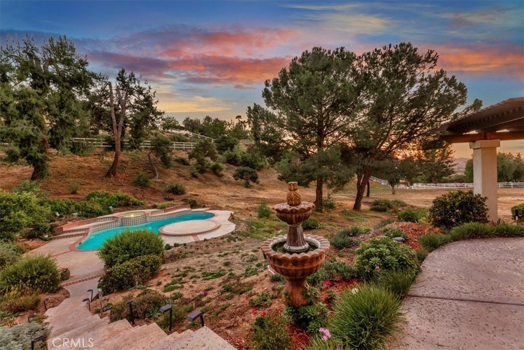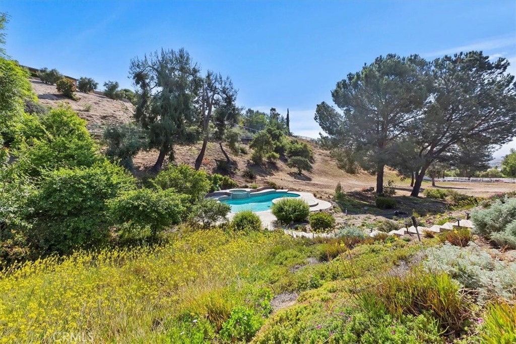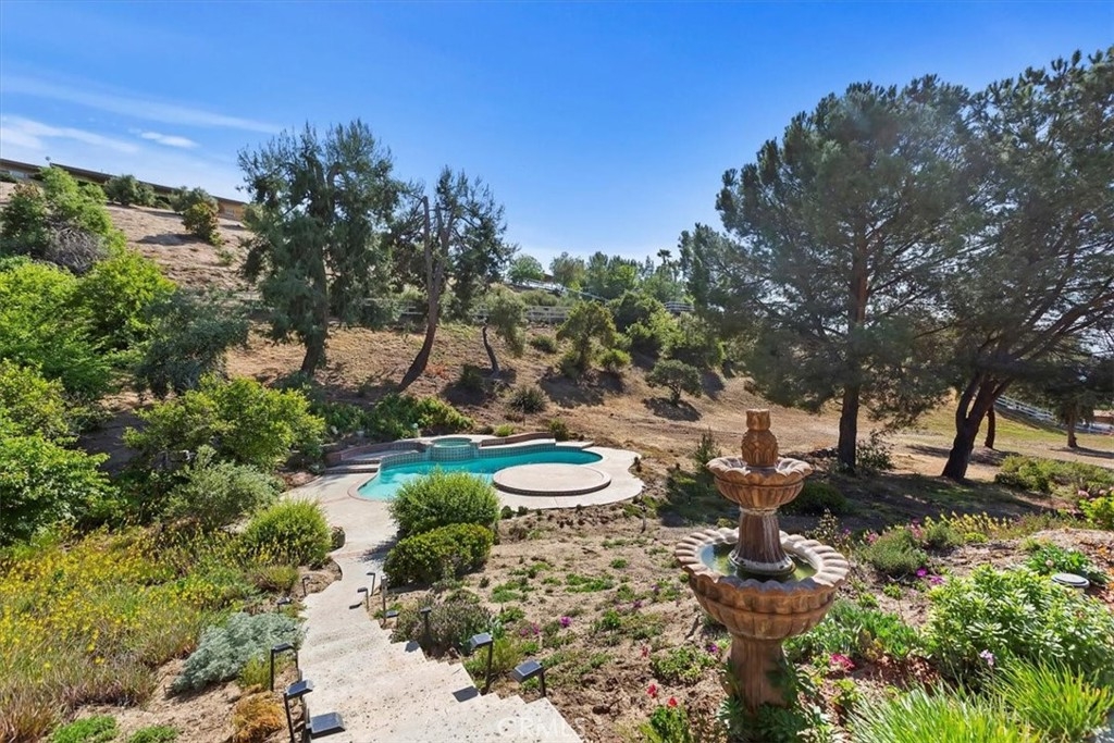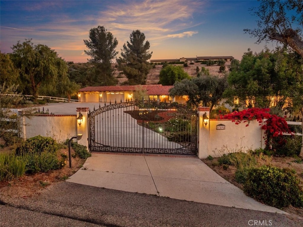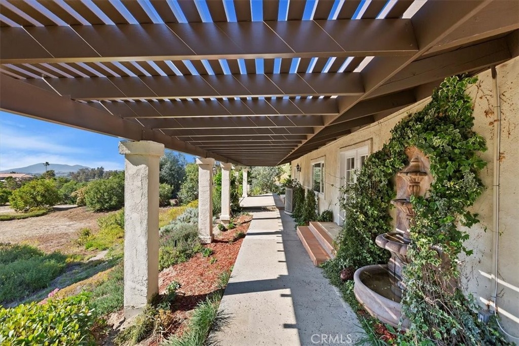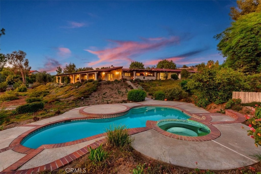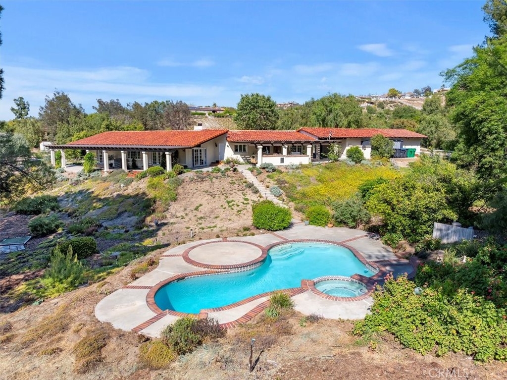 Stunning single story estate with views of vineyards and rolling hills with amazing sunsets and morning hot air balloons in the prestigious community of Glenoak Hills. Offers the perfect blend of timeless charm, luxury, and endless potential with its all usable land. Set on a fully fenced and gated 2.4 acre lot of entirely usable land, this property is a rare find. Step inside to an open, light-filled floor plan with 2,500 sq ft of living space, featuring four bedrooms and 2.5 baths. Enjoy a welcoming family room with a cozy fireplace, travertine flooring, and two French doors that open to beautiful grounds with access to the pool. The expansive living room impresses with a four-panel French door, oversized windows, and a statement chandelier. The gourmet kitchen has been beautifully remodeled with white cabinets, quartz countertops, crown molding, a coffered ceiling, and recessed lighting. The luxurious primary suite with a four-panel French door offers private patio access, a spa-inspired bathroom with granite counters, and an exquisite glass-inlay window. Plantation shutters and custom window coverings add elegance throughout. Classic Spanish architecture flows seamlessly outdoors with a clay tile roof, terracotta walkways, and a charming breezeway. The entertainer’s backyard is truly a resort paradise with the beautiful mature landscaping complete with a sparkling pool, an outdoor kitchen with bar seating and refrigerator, tranquil fountains, and an Alumawood patio cover perfect for sunset dining. Additional features include a four-car garage with a Tesla charger, a covered carport, abundant guest parking, and a newer HVAC system. This impeccably maintained estate offers exceptional potential for a guest house, ADU, horse facilities, or RV garage, tailored to your lifestyle. Community amenities include two tennis courts, a clubhouse, a horse arena, and a playground. Just minutes from Temecula’s finest wineries along the De Portola Wine Trail—including Leoness, Altisima, Fazeli, and Renzoni. Enjoy low taxes, low HOA fees, and the ultimate Wine Country lifestyle. Don’t miss this rare opportunity, homes like this seldom come available! Schedule your private tour today.