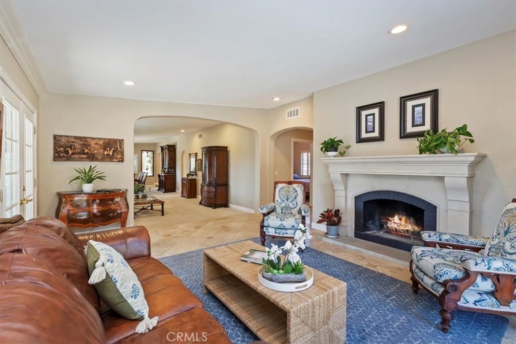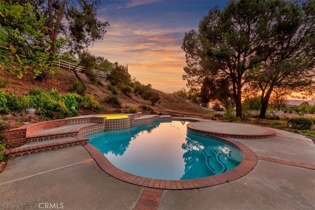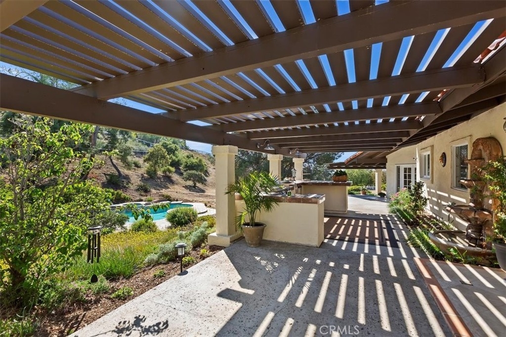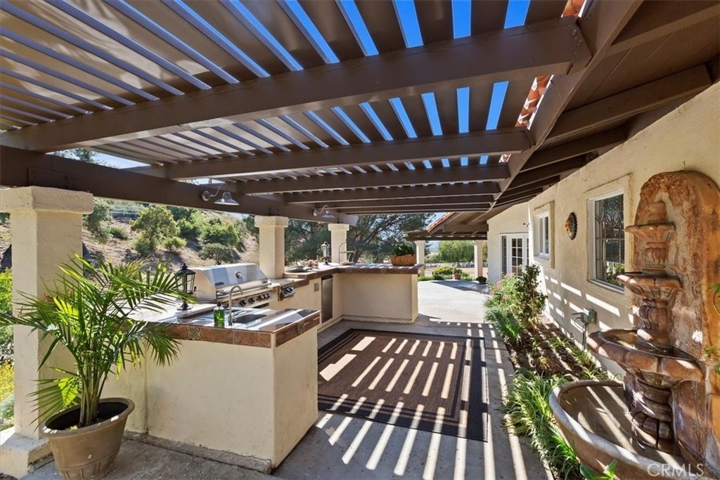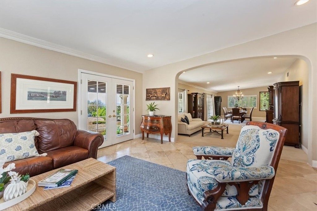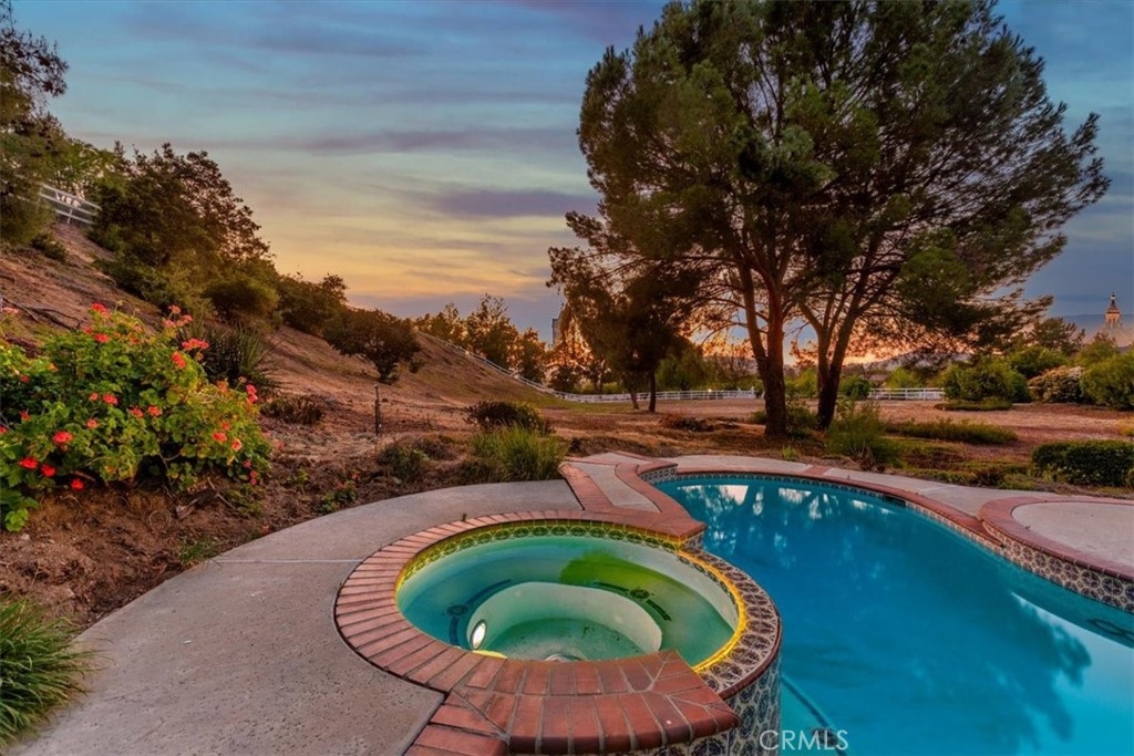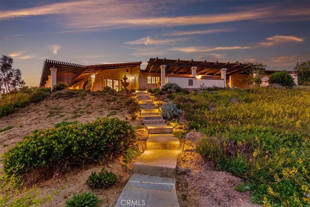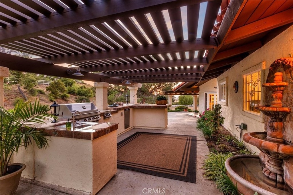 Stunning single story estate with views of vineyards and rolling hills with amazing sunsets and morning hot air balloons in the prestigious community of Glenoak Hills. Offers the perfect blend of timeless charm, luxury, and endless potential with its all usable land. Set on a fully fenced and gated 2.4 acre lot of entirely usable land, this property is a rare find. Step inside to an open, light-filled floor plan with 2,500 sq ft of living space, featuring four bedrooms and 2.5 baths. Enjoy a welcoming family room with a cozy fireplace, travertine flooring, and two French doors that open to beautiful grounds with access to the pool. The expansive living room impresses with a four-panel French door, oversized windows, and a statement chandelier. The gourmet kitchen has been beautifully remodeled with white cabinets, quartz countertops, crown molding, a coffered ceiling, and recessed lighting. The luxurious primary suite with a four-panel French door offers private patio access, a spa-inspired bathroom with granite counters, and an exquisite glass-inlay window. Plantation shutters and custom window coverings add elegance throughout. Classic Spanish architecture flows seamlessly outdoors with a clay tile roof, terracotta walkways, and a charming breezeway. The entertainer’s backyard is truly a resort paradise with the beautiful mature landscaping complete with a sparkling pool, an outdoor kitchen with bar seating and refrigerator, tranquil fountains, and an Alumawood patio cover perfect for sunset dining. Additional features include a four-car garage with a Tesla charger, a covered carport, abundant guest parking, and a newer HVAC system. This impeccably maintained estate offers exceptional potential for a guest house, ADU, horse facilities, or RV garage, tailored to your lifestyle. Community amenities include two tennis courts, a clubhouse, a horse arena, and a playground. Just minutes from Temecula’s finest wineries along the De Portola Wine Trail—including Leoness, Altisima, Fazeli, and Renzoni. Enjoy low taxes, low HOA fees, and the ultimate Wine Country lifestyle. Don’t miss this rare opportunity, homes like this seldom come available! Schedule your private tour today.