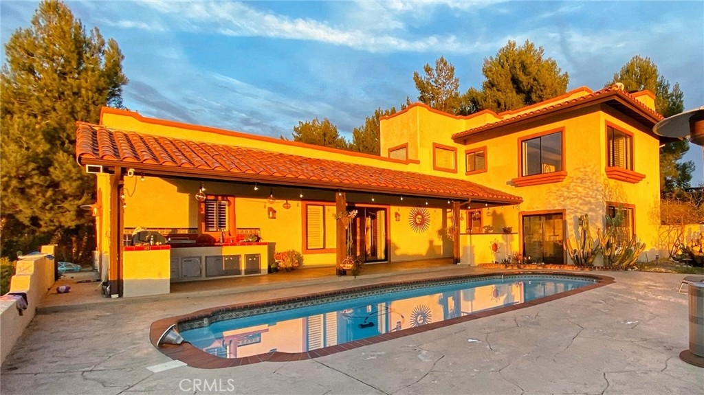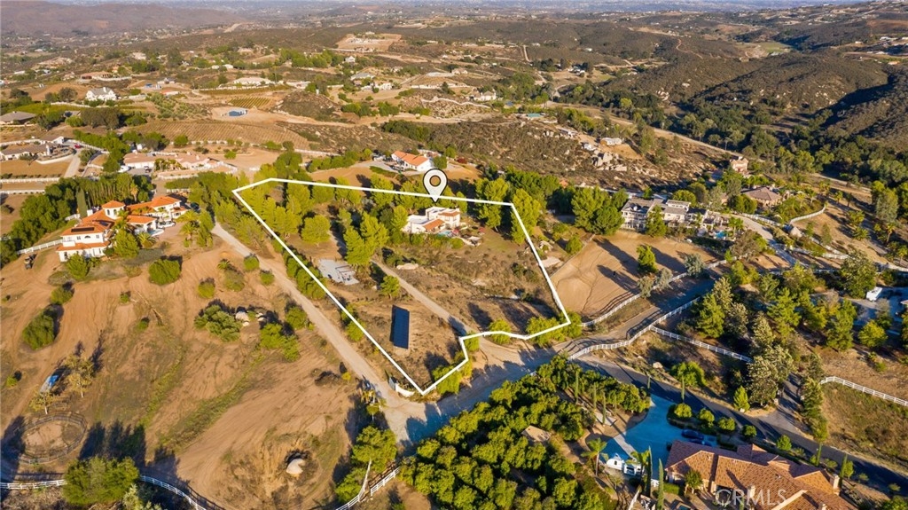 VIEWS, POOL, SOLAR, 2 RV-EV HOOK UPS, PRIVATELY GATED. Welcome home to the most stunning custom Estate in prestigious wine country, in Temecula. This stunning 3 bedroom, 3 bath, with a den, 2500sqft, pool home was updated 2 years ago with Spanish influences and custom touches. The property is 3.13 acres of useable LAND, allowing for horses, RV's, toys and is surrounded by trees making it very private. Trees line the fully fenced property and a seasonal stream flows through from time to time. The custom home offers a private front courtyard, real wood doors throughout, a newly painted interior and exterior, an updated roof expanding the roof life expectancy and leased solar on the hillside. The interior of the estate features new LVP floors throughout the main areas of the home, high baseboards, high end finishes, imported Spanish tile touches throughout, plantation shutters in certain rooms, large windows allowing tons of natural light and an open concept floorpan. The updated kitchen features granite counters, freshly painted cabinets, stainless steel range with an eat up bar and dining area that overlooks the inset great room and custom tiled fireplace with brick accents and access to the yard. The main floor also offers an upgraded powder room that's just off the large laundry room featuring a sink and storage. The master suite is desirably located on the main floor boasting french doors with access to the yard, a walk-in closet, and large master bath with custom his and her sinks, tile standing shower, access again to the yard and custom tile floors. The garage is just off the master, and is currently a large game room that can easily be converted back to a two car garage. The upgraded stairs are finished with oak and Spanish tile accents. The second story offers two generously sized bedrooms with views of the valley, and a third room that boasts a wood burning fireplace and can be used as a 4th bedroom or den. The entertainers yard is landscaped to perfection offering an eat up bar for 4 overlooking the retro heated pool with a separate area to BBQ with built in Lyon appliances from BBQ, sink, fridge and custom tile counters accented by bistro lighting. The property also features a pot-belly fireplace, separate fire-pit seating area and another entertainment space under a free-standing canopy. The property has access to horse trails, is 10 minutes from the all wineries, and is in the Temecula Valley School district!!!