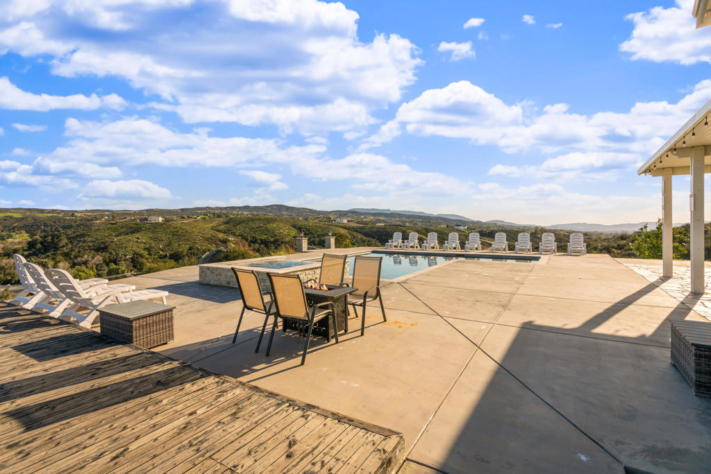 WINE COUNTRY HILLTOP ESTATE WITH PANORAMIC VIEWS ON 4.3 Acres. Exceptional Wine Country Hilltop Estate offering sweeping panoramic views of surrounding mountains, groves, and the Temecula Valley, with sight-lines extending toward the Pacific Ocean. Ideally positioned atop a private and secluded 4.3-acre knoll, this custom Cape Cod-style residence offers a rare blend of peaceful rural living with convenient access to renowned wineries, shopping, dining, and local amenities. The home presents and shows like a luxury model.The property features expansive outdoor living and recreation areas, including a resort-style pool and spa designed to capture endless views, gated entry, a three-car garage, and ample additional parking for approximately nine vehicles. Approximately three acres of usable flat and gently sloped land offer excellent potential for equestrian facilities, vineyards, citrus groves, agricultural use, or a possible ADU (buyer to verify) The home is configured as seven bedrooms and 4.5 bathrooms and includes a private office, two primary suites--one on the main level and one upstairs--and multiple fireplaces throughout. Nearly every room enjoys breathtaking views and abundant natural light. Interior highlights include freshly painted interiors, soaring ceilings, dual-pane windows, ceiling fans throughout, and a formal dining area accommodating up to ten guests.The recently remodeled gourmet chef's kitchen features high-end Kitchen Aid stainless steel appliances, extensive cabinetry and storage, a large center island, and a dedicated espresso bar. The main living area is anchored by an impressive dry-stacked fireplace, vaulted ceilings, and expansive windows, creating seamless indoor-outdoor flow through sliding doors leading to the patio.The downstairs primary suite offers a private fireplace, direct patio access, tranquil views, a spacious en-suite bathroom, and an oversized walk-through closet. Upstairs bedrooms and the loft/TV area capture additional scenic vistas through charming dormer windows.Designed for entertaining and relaxation, the outdoor living space includes a newer resort-style pool and spa, built-in BBQ, sink, outdoor refrigerator, multiple seating areas, and unforgettable sunset views overlooking Wine Country. The property has been exceptionally well maintained and reflects true pride of ownership.Additional features include both 30-amp and 50-amp RV electrical hookups with dump station, no HOA.