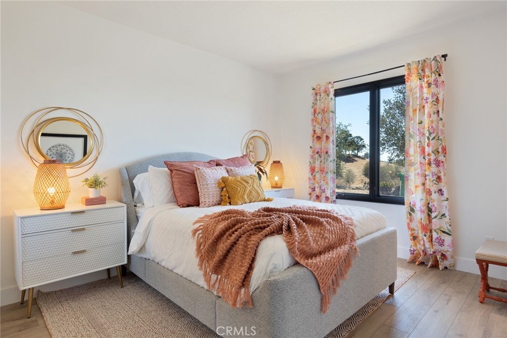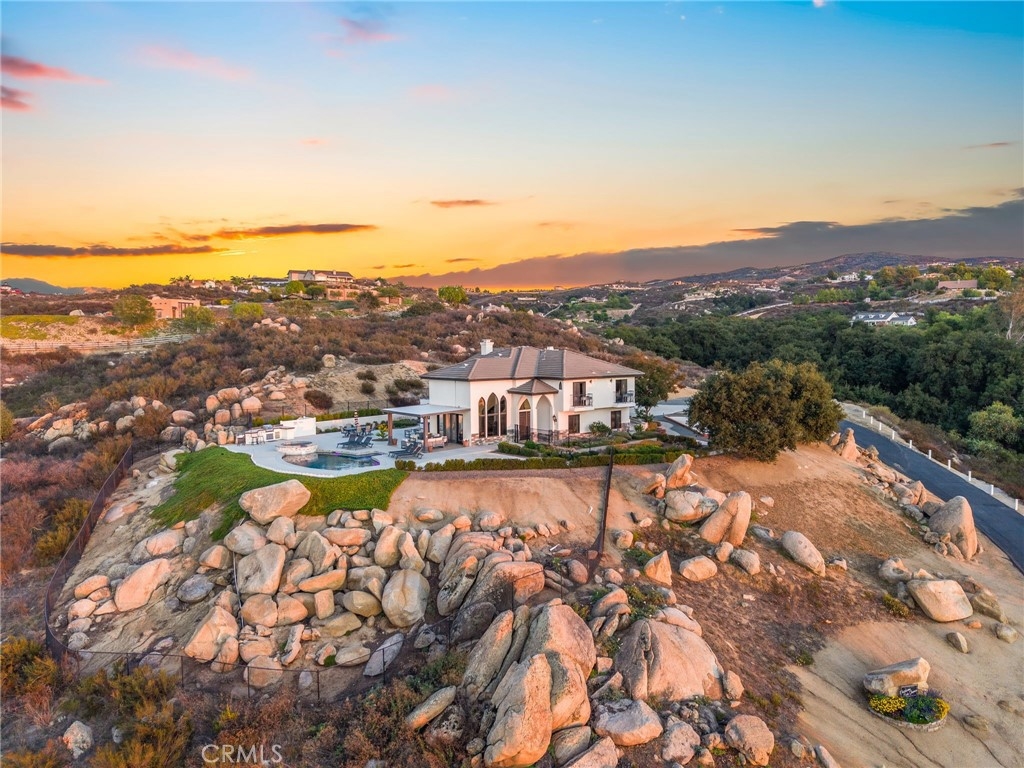 Chateau Evie James is a must-see hilltop estate in the heart of Temecula’s famed Wine Country. Set on almost 5 acres with panoramic vineyard and valley views, this fully remodeled 5-bedroom, 4-bath residence offers the perfect blend of luxury, comfort, and turn-key convenience. Inside, discover a thoughtfully reimagined floorplan with expansive dining and living spaces, brand-new flooring, and oversized view windows that flood the home with natural light. The chef’s kitchen is a true showpiece, featuring quartz countertops, custom cabinetry, an 8-burner gas stove, wine cooler, coffee bar, banquette seating, and under-drawer microwave, ideal for entertaining or everyday living. Every bathroom has been beautifully updated, with the primary suite boasting a spa-like retreat with a freestanding soaking tub and designer finishes. Additional highlights include: A fully converted game room with mini split, arcade games, and shuffleboard Two new AC units with Nest thermostats Laundry room with two washers and dryers (included) Designer lighting and an electric fireplace. Step outside to your own private resort: a sparkling new pool and spa, covered patio, BBQ island, bocce ball court, tiled patio spaces, and lush landscaping with smart irrigation. Whether enjoying a quiet morning coffee or hosting unforgettable gatherings, every moment is framed by absolutely amazing views! Offered fully furnished, this estate is move-in ready and perfectly suited as a full-time residence, vacation home, or high-end short-term rental investment. Just minutes from world-class wineries, dining, and equestrian centers, this is Wine Country living at its finest.