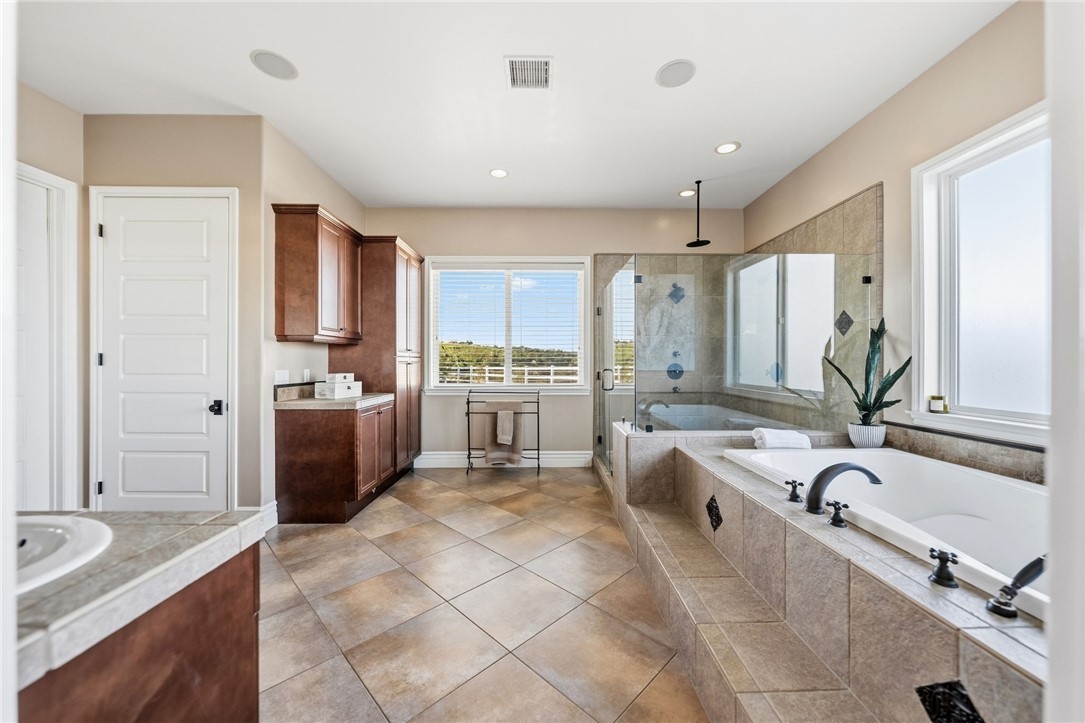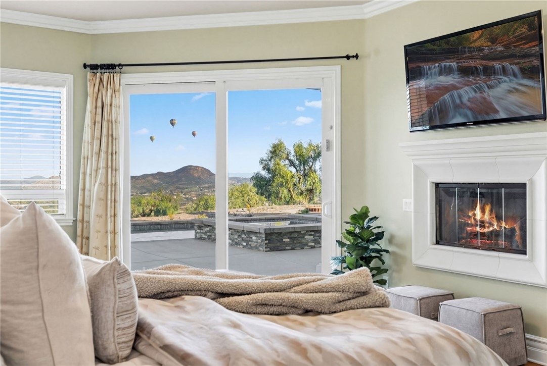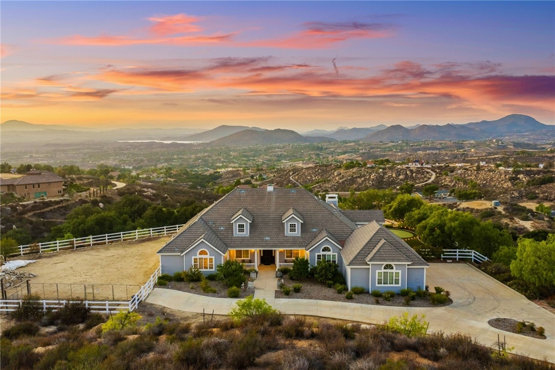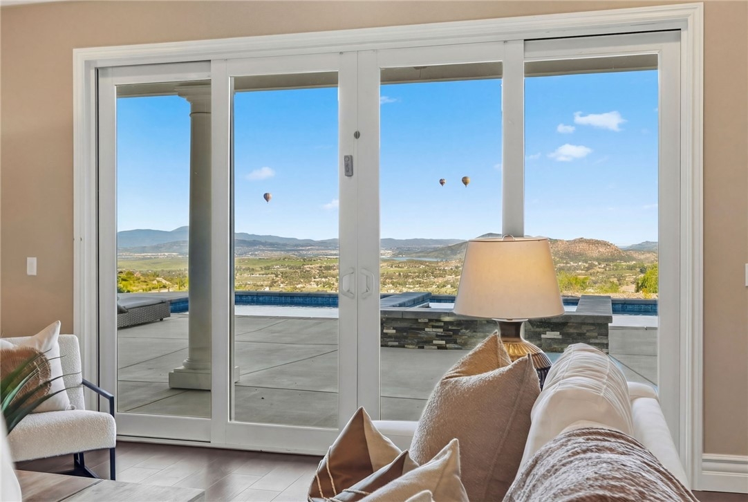 BACK ON MARKET, NO FAULT OF SELLER! Welcome to this stunning single story custom estate perched high above Temecula’s Wine Country, offering unobstructed panoramic views of vineyards, Lake Skinner, hot air balloons, and sunsets. Spanning 4,562 sq ft, this 5 bed, 3.5 bath home was thoughtfully designed by its original owners and built in 2006 with an incredible floor plan and high end finishes throughout. You’re greeted by soaring ceilings, crown molding, and a direct line of sight to the sparkling pebble tech pool through oversized sliders. The formal living room features a fireplace, bar, and serene backyard views, perfect for entertaining. The right wing offers a formal dining room, private office or 5th bedroom, bathroom, and a massive kitchen that opens to the dining nook and family room with another fireplace. The chef’s kitchen boasts expansive counters, a large island with bar sink, six burner cooktop, double ovens, built in fridge, and walk in pantry, plus abundant storage and an oversized laundry room. The left wing includes four bedrooms, including the luxurious primary suite with its own fireplace, backyard access, and oversized en-suite with huge walk in shower, jetted soaking tub, and large closet. Two bedrooms share a dual sink bath, while the fourth is a junior suite with its own full bath. This home has 2x6 framing with full insulation, 2 recently replaced on demand water heaters, A Halo whole house water filtration, central vacuum with floor sweeps (kitchen, primary bath, laundry) plus a garage car kit, dual AC units with independent zoning (including office control), and recently replaced AC units and built in fridge. Energy efficiency shines with a ground-mounted 35-panel solar array prepaid through 2035 and a solar pool heater. Benefit from a low ~1% tax base and no Mello-Roos or water-bond assessments, the bond was paid in 2007. The oversized 3-car garage offers ample space for storage or toys. There’s also an unfinished attic with 9-ft ceilings accessed via telescoping ladder in the pantry. Step outside to an entertainer’s backyard featuring a pool & spa with incredible sunset views, lush lawn with putting green (former sand trap replaced with mulch and new planting), and a large flat pad ideal for an RV garage, equestrian setup, or future ADU—all oriented toward the views. Set in one of Wine Country’s most desirable and private pockets, this home perfectly blends luxury, function, and jaw-dropping views.
