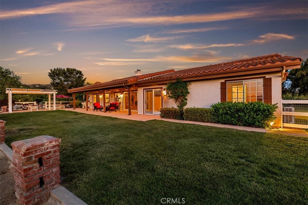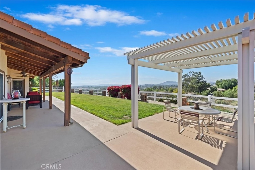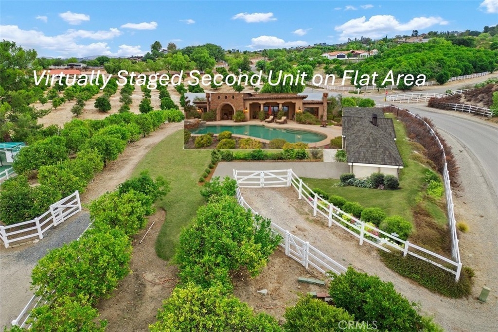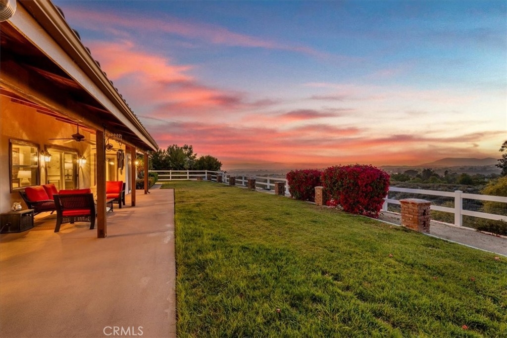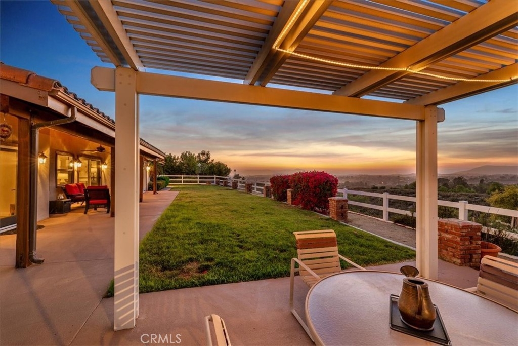 ***Build a second unit fully private from the main house with its own street access on this all-usable, flat view property in the heart of Temecula’s prestigious GlenOak Hills community!*** Welcome to this stunning single-story estate, freshly painted and beautifully maintained, offering panoramic 360-degree views of Wine Country, the mountains, breathtaking sunsets, and twinkling city lights. Perfectly positioned on a prime corner lot, this gated and fully fenced 2.21-acre property combines luxury, privacy, and flexibility. Inside, you’ll find a bright, open floor plan designed for both elegant entertaining and comfortable living. The home features a formal dining room, a spacious living room with a fireplace, and a dramatic family room with a floor-to-ceiling brick fireplace and a custom wet bar. Every room offers sweeping views and the sight of hot-air balloons drifting above the vineyards in the morning. Kitchen showcases hand-finished oak cabinetry, granite countertops, stainless steel appliances (including a brand-new refrigerator), a wine cooler refrigerator, a large dining nook, and a walk-in pantry. Hickory hardwood flooring adds warmth and sophistication throughout the main living areas. The primary suite is a private retreat with French doors opening to the patio and Wine Country views. The spa-style bathroom features a soaking tub, travertine finishes, and a generous walk-in closet. Secondary bathrooms are equally luxurious, featuring travertine tile, designer glass enclosures, and granite countertops. Outside, the possibilities are endless. The flat, fully usable land is ideal for a second dwelling or an ADU, pool, vineyard, and horses. Multiple gated access points and RV hookups with 50-amp power provide exceptional flexibility. The oversized 3-car garage, which has one finished bay with vinyl flooring, cabinetry, and A/C, is perfect for a home gym or office and can be easily converted to a Junior Dwelling Unit with its own entrance. Enjoy mature fruit trees, low HOA fees, and a low property tax area. GlenOak Hills offers residents two tennis courts, a clubhouse, horse arena, and children’s playground. Minutes from Temecula’s finest wineries along the De Portola Wine Trail, including Leoness, Altisima, Fazeli, and Renzoni. A rare combination of views, usability, and luxury. This property must be seen to be truly appreciated.