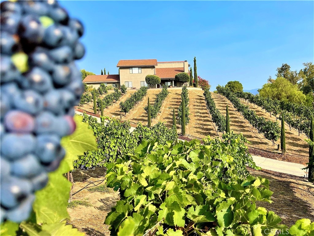 Experience the dream of living among the vineyards in Temecula Valley Wine Country! This stunning property offers everything you could want in a luxury estate, including a separate guest house/ADU and an active, income-producing vineyard.The main residence spans approximately 2,400 sq ft and features a thoughtfully designed two-story layout. Downstairs, you’ll find two bedrooms and a full bathroom—perfect for guests or multigenerational living. Upstairs, the private primary suite includes a full bathroom, loft, and dedicated office space, all complemented by breathtaking vineyard and valley views.Soaring ceilings on the main level create an open, airy feel, enhancing the spacious living room and dining area. French doors lead to an expansive patio, seamlessly blending indoor and outdoor living.Step outside to your entertainer’s paradise. The beautifully designed outdoor space includes a built-in BBQ with bar seating, a cozy fire pit conversation area, and multiple dining spaces illuminated by charming market lights. Tucked away for privacy, a spa retreat with a pub table provides the perfect setting to unwind under the stars while taking in sweeping vineyard views. The approximately 1,100 sq ft guest house offers incredible flexibility, featuring 3 bedrooms, 2 full bathrooms, its own covered patio, private yard, and a detached 2-car garage—ideal for extended family, guests, or as a fully self-sufficient, income-producing ADU.Between the main home and guest house, a resort-style oasis awaits. Enjoy a sparkling pool, covered pergola, gazebo, and even a private putting green—perfect for relaxing, entertaining, or enjoying time with family and friends. This property also features a producing vineyard with Syrah grapes currently harvested and sold to local wineries. Continue generating income, or take it a step further by creating your own private label and embracing the full wine country lifestyle.With endless possibilities and unmatched charm, this exceptional property is ready to become your dream home.