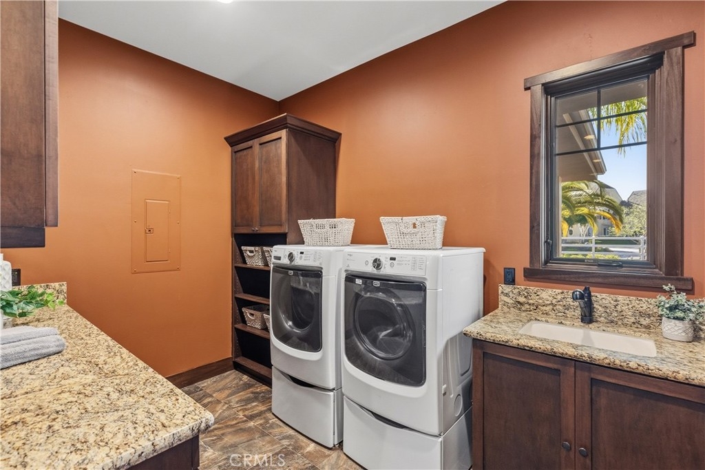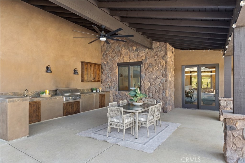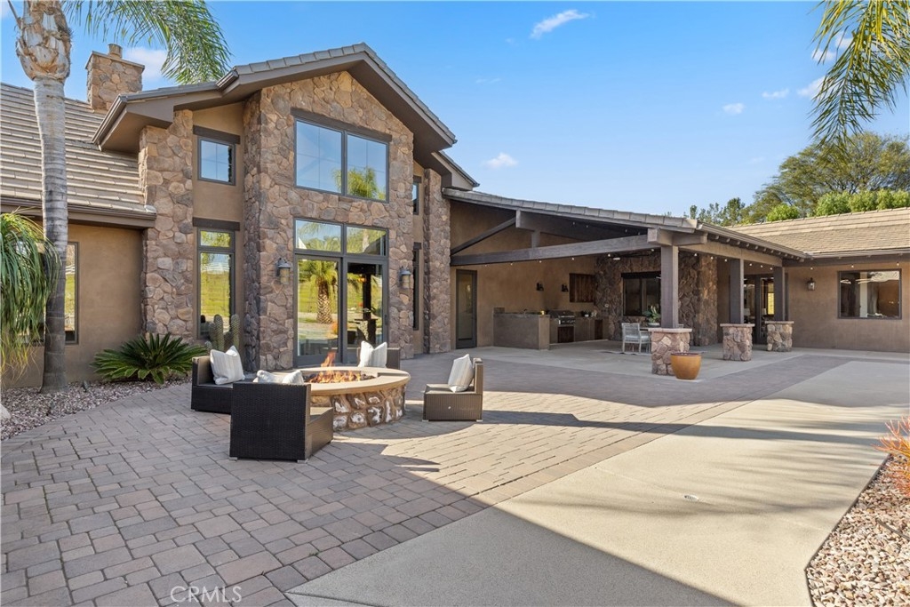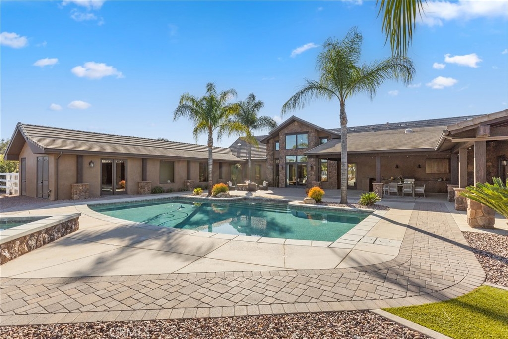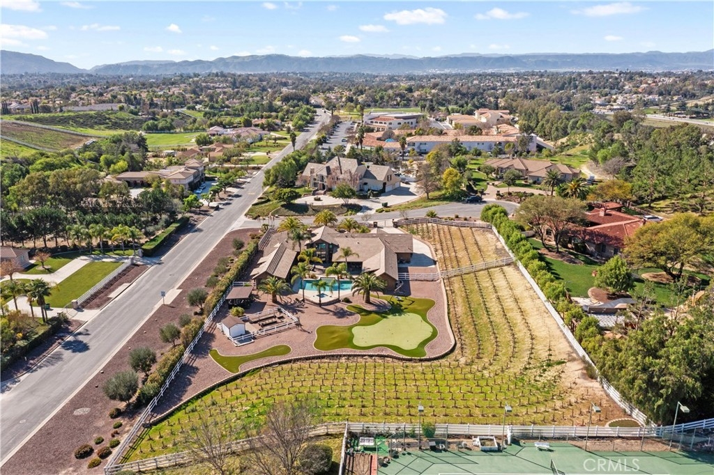 Premier Wine Country Estate with Vineyard & Multi-Generational Design. This exceptional Temecula estate offers 6 bedrooms, 5 bathrooms, and approximately 5,031 square feet of thoughtfully designed living space, perfectly suited for multi-generational living or flexible use. The home is intelligently divided into two distinct wings: the main wing features four oversized bedrooms along with a theater room or office, while the secondary wing functions as a private living suite complete with two bedrooms, a full kitchen, dining and living areas, a shared bath, and direct garage access—ideal for extended family, guests, or potential rental use. The gourmet kitchen showcases a Wolf range, Sub-Zero refrigerator, wine fridge, and rich custom wood cabinetry, complemented by durable commercial-grade wood plank flooring and soaring two-story ceilings that flood the home with natural light. Nearly every room overlooks the heart of the property—an entertainer’s dream featuring a saltwater PebbleTec pool, putting green, gas fire pit, full outdoor kitchen, and approximately three-quarters of an acre of income-producing vineyard. Additional highlights include a luxury lighted chicken coop, raised garden beds, powered storage shed, oversized three-car garage with extensive storage, and a fully finished attic large enough for a future game or bonus room. Fully gated with RV parking and hookups, low-maintenance landscaping, and the rare advantage of city water, natural gas, and sewer—with no HOA—this one-of-a-kind property is just minutes from Temecula Wine Country, shopping, and freeway access. A truly special offering that blends luxury, functionality, and lifestyle.