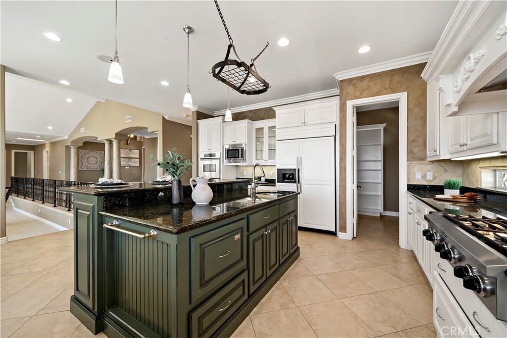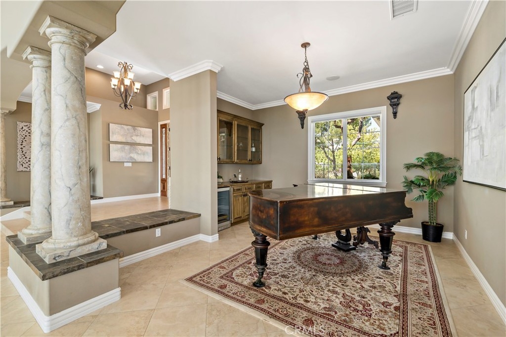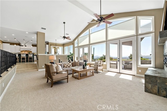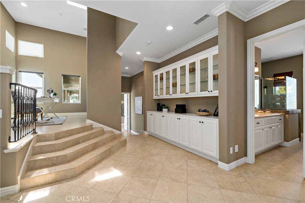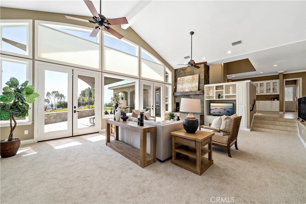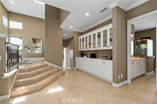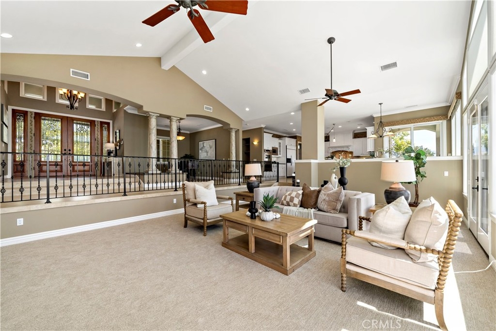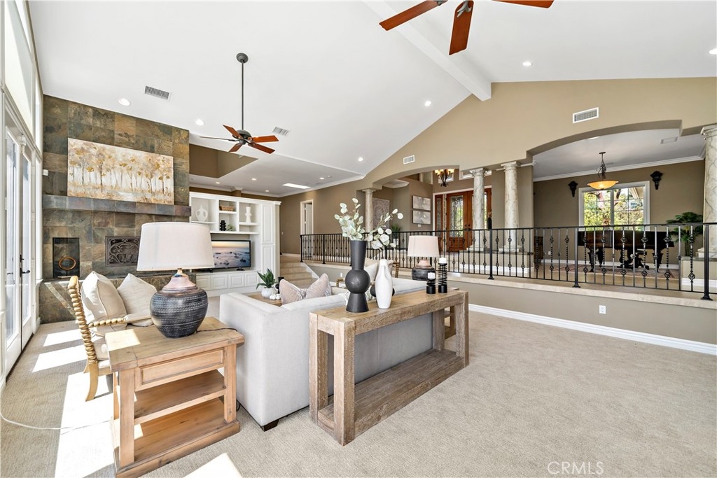 Beamed Ceilings, Built-in Features, Cathedral Ceiling(s), Ceiling Fan(s), Crown Molding, Granite Counters, High Ceilings, Open Floorplan, Pantry, Pull Down Stairs to Attic, Recessed Lighting, Sunken Living Room, Vacuum Central