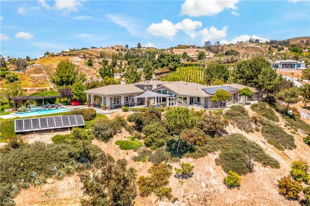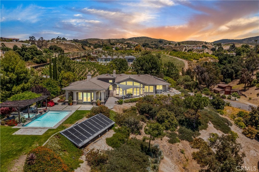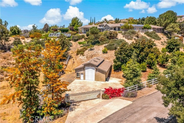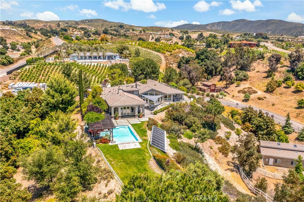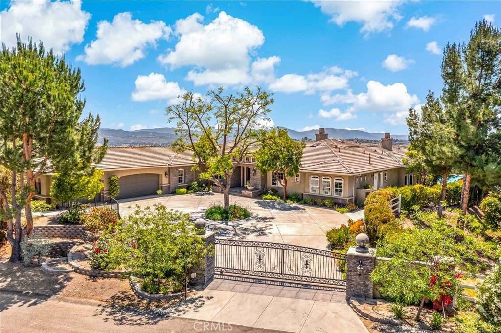 HUGE PRICE REDUCTION. Welcome to 42111 Chaparral Drive, a beautiful and inviting residence nestled in the heart of the picturesque Temecula wine country. This stunning single story home offers a perfect blend of comfort, style and functionality, making it an ideal choice for a serene and convenient lifestyle. Situated in the desirable and tranquil neighborhood of Glen Oaks, this property provides easy access to top-rated schools, shopping centers, restaurants, and the renowned Temecula Wine Country. Step inside to discover an open and airy floor plan featuring high ceilings, ample natural light and tasteful finishes throughout. The HUGE great room welcomes you with a cozy fireplace and floor to ceiling windows that frame the beautiful views of the valley below. The well-appointed kitchen is a chef's dream, featuring granite countertops, stainless steel appliances, a large center island with bar seating, and plenty of cabinet space, plus a walk-in pantry. The adjacent informal dining area is perfect for family meals and entertaining guests w amazing views of vineyards and the valley. This home offers four spacious bedrooms and four full bathrooms w 1 bedroom set up as an movie theater. The master suite is a true retreat, complete with a 2 sided gas fireplace, walk-in closet and an en-suite bathroom featuring dual vanities, a soaking tub, and a separate shower. The backyard is an oasis for relaxation and entertainment, featuring a heated pool & spa, covered patio, lush landscaping and panoramic views. Enjoy the Southern California weather year-round in this private and peaceful setting. The charming curb appeal is highlighted by a well-maintained front yard, a spacious driveway, and an attached three-car garage. The home's exterior boasts a combination of stucco and stone accents, complemented by mature landscaping. Included on the lower portion of the parcel is a separate OVERSIZED RV garage w dedicated driveway, gated entry and a full bathroom, perfect for a shop, additional vehicle parking, workspace and more. The solar power system offers major energy savings. Glen Oaks is family-friendly and offers a strong sense of community. Don’t miss the opportunity to make this exceptional property your new home. Contact us today to schedule a private tour and experience the charm and elegance of Chaparral Drive. This is more than just a house; it’s a place where memories are made and dreams come true.
