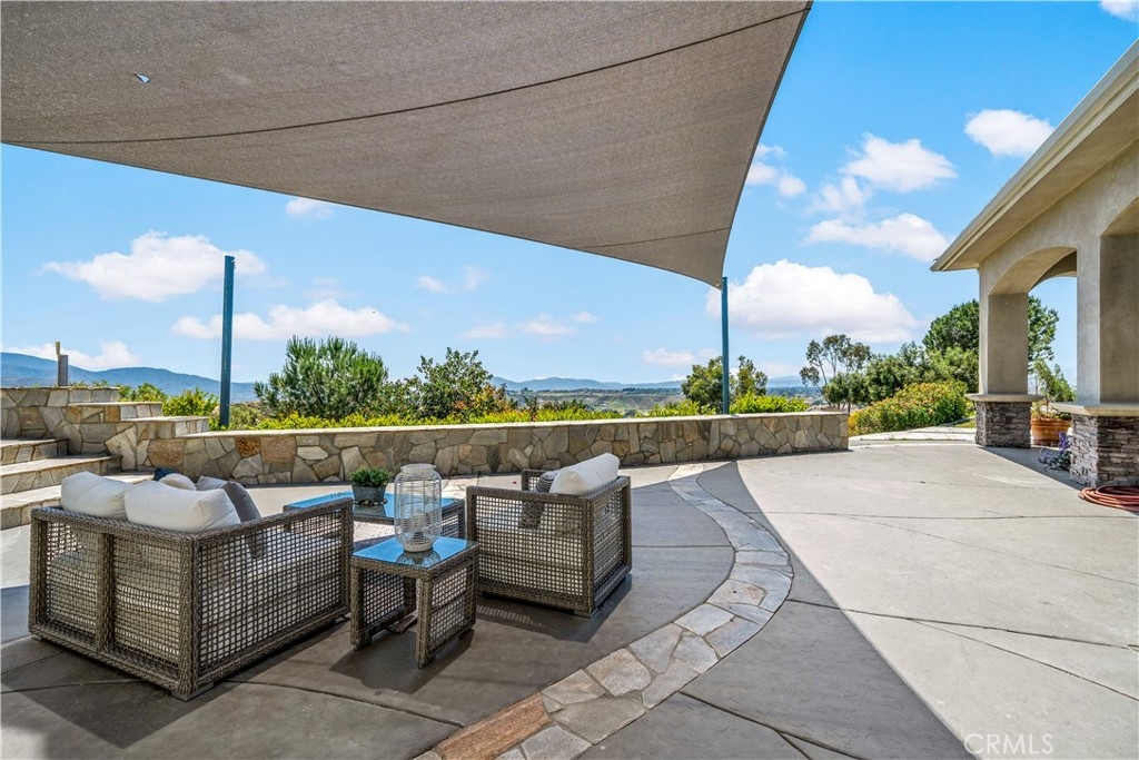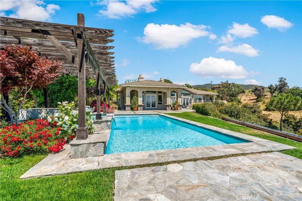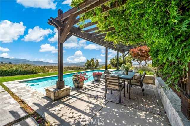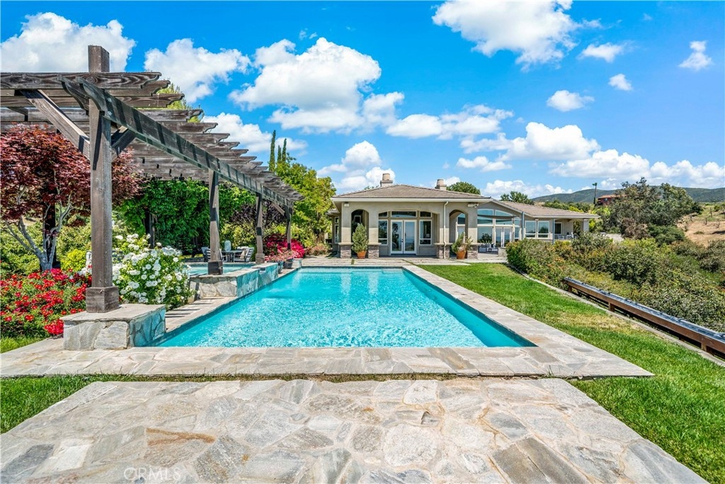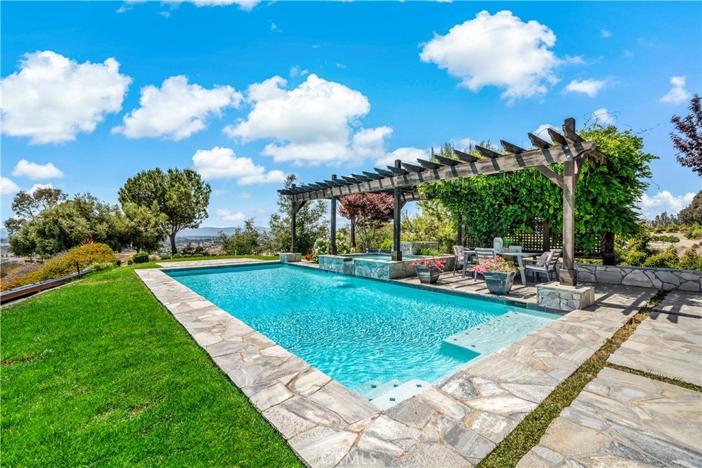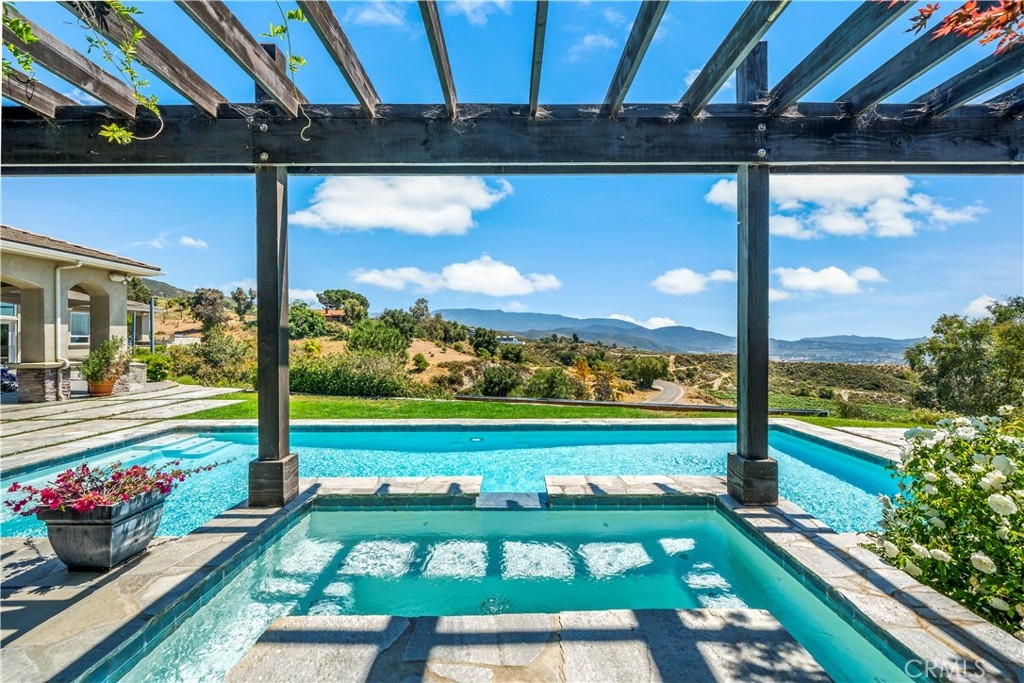 HUGE PRICE REDUCTION. Welcome to 42111 Chaparral Drive, a beautiful and inviting residence nestled in the heart of the picturesque Temecula wine country. This stunning single story home offers a perfect blend of comfort, style and functionality, making it an ideal choice for a serene and convenient lifestyle. Situated in the desirable and tranquil neighborhood of Glen Oaks, this property provides easy access to top-rated schools, shopping centers, restaurants, and the renowned Temecula Wine Country. Step inside to discover an open and airy floor plan featuring high ceilings, ample natural light and tasteful finishes throughout. The HUGE great room welcomes you with a cozy fireplace and floor to ceiling windows that frame the beautiful views of the valley below. The well-appointed kitchen is a chef's dream, featuring granite countertops, stainless steel appliances, a large center island with bar seating, and plenty of cabinet space, plus a walk-in pantry. The adjacent informal dining area is perfect for family meals and entertaining guests w amazing views of vineyards and the valley. This home offers four spacious bedrooms and four full bathrooms w 1 bedroom set up as an movie theater. The master suite is a true retreat, complete with a 2 sided gas fireplace, walk-in closet and an en-suite bathroom featuring dual vanities, a soaking tub, and a separate shower. The backyard is an oasis for relaxation and entertainment, featuring a heated pool & spa, covered patio, lush landscaping and panoramic views. Enjoy the Southern California weather year-round in this private and peaceful setting. The charming curb appeal is highlighted by a well-maintained front yard, a spacious driveway, and an attached three-car garage. The home's exterior boasts a combination of stucco and stone accents, complemented by mature landscaping. Included on the lower portion of the parcel is a separate OVERSIZED RV garage w dedicated driveway, gated entry and a full bathroom, perfect for a shop, additional vehicle parking, workspace and more. The solar power system offers major energy savings. Glen Oaks is family-friendly and offers a strong sense of community. Don’t miss the opportunity to make this exceptional property your new home. Contact us today to schedule a private tour and experience the charm and elegance of Chaparral Drive. This is more than just a house; it’s a place where memories are made and dreams come true.
