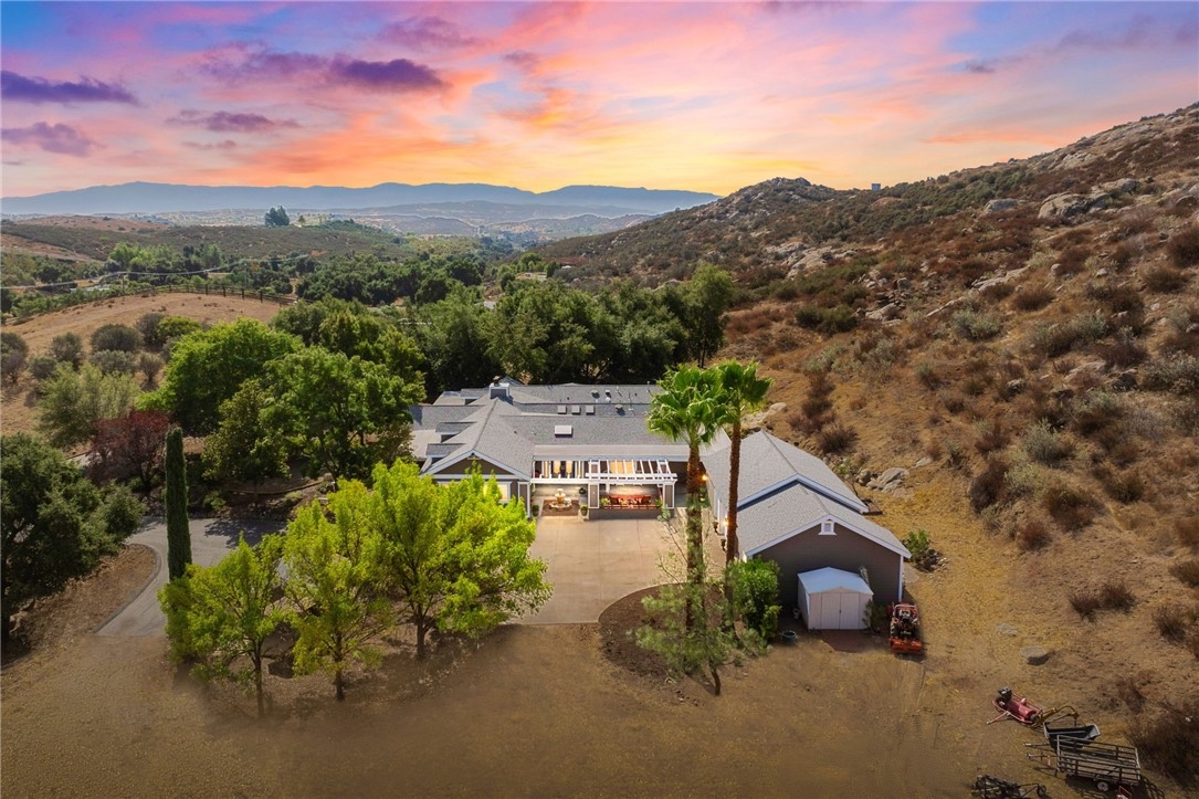 This stunning single-story estate on 19+ acre offers over 4,600 square feet of living space and is located in the exclusive Oakridge Ranches. The main house features 3 bedrooms and 3 full baths and the detached fourth bedroom is currently used as an office and includes a half-bath, making it ideal for a guest suite or private workspace. This beautiful home is designed for comfort and luxury, with light-colored travertine tile throughout the main living areas and cozy carpeting in the bedrooms. This open floor plan offers multiple areas to read, relax and have privacy and is perfect for entertaining. The house includes two wood-burning fireplaces, one in the spacious master bedroom and another in the living room, creating warm, inviting spaces to relax.